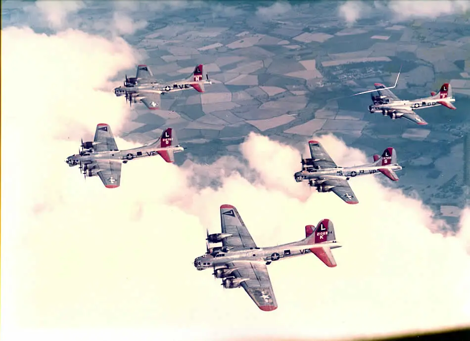 Boeing B-17 in practice formation over Great Britain. 8th Air Force.