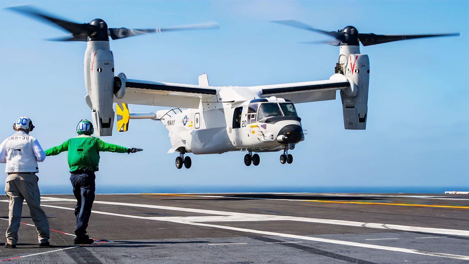 PACIFIC OCEAN (June 15, 2024) A CMV-22B Osprey, assigned to the “Titans” of Fleet Logistics Multi-Mission Squadron (VRM) 30, lands on the flight deck of Nimitz-class aircraft carrier USS Carl Vinson (CVN 70) while underway in the U.S. 3rd Fleet area of operations. (U.S. Navy photo by Mass Communication Specialist 2nd Class Derek Kelley)