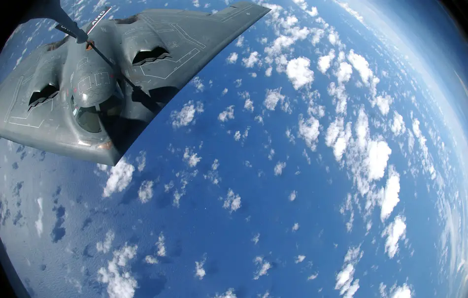 Related ArticleA KC-135 Stratotanker refuels a B-2 Spirit Nov. 20 over the Pacific Ocean. The B-2 and KC-135 are deployed to Andersen Air Force Base, Guam, to support U.S. Pacific Command's continuous bomber presence and theater security package operations. The KC-135 is assigned to the from the 121st Refueling Squadron from Rickenbacker International Airport at Columbus, Ohio. The B-2 is assigned to the 509th Bomb Wing from Whiteman AFB, Mo. (U.S. Air Force photo/Senior Airman Brian Kimball)
