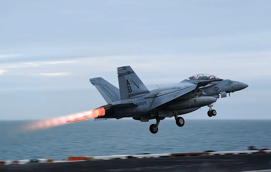 ATLANTIC OCEAN (March 27, 2015) An F/A-18F Super Hornet assigned to the Checkmates of Strike Fighter Attack Squadron (VFA) 211 launches from the aircraft carrier USS Theodore Roosevelt (CVN 71). Theodore Roosevelt deployed from Norfolk and will execute a homeport shift to San Diego at the conclusion of this deployment. Theodore Roosevelt is conducting naval operations in the U.S. 6th Fleet area of responsibility in support of U.S. national security interests in Europe. (U.S. Navy photo by Mass Communication Specialist Seaman Anthony Hopkins II)