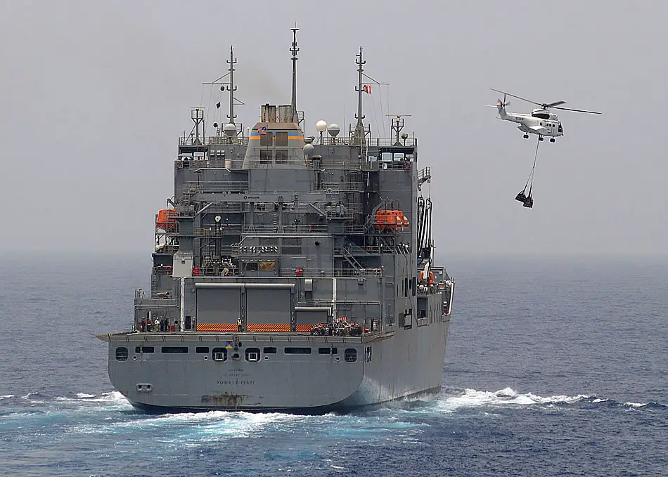 U.S. 5TH FLEET AREA OF RESPONSIBILITY (July 10, 2010) An SA-330J Puma helicopter assigned to the Military Sealift Command dry cargo and ammunition ship USNS Robert E. Peary (T-AKE 5) carries supplies to the amphibious dock landing ship USS Ashland (LSD 48) during a vertical replenishment. Ashland is part of the Nassau Amphibious Ready Group supporting maritime security operations and theater security cooperation operations in the U.S. 5th Fleet area of responsibility. (U.S. Navy photo by Mass Communication Specialist 2nd Class Jason R. Zalasky)