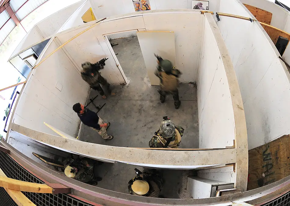 MOYOCK, N.C. (Nov. 4, 2010) Navy SEALs conduct close quarters combat training in a simulated home at U.S. Training Center Moyock. SEALs are the maritime component of U.S. Special Operations Forces and are trained to conduct a variety of operations from the sea, air, and land. (U.S. Navy photo by Mass Communication Specialist 2nd Class Eddie Harrison)