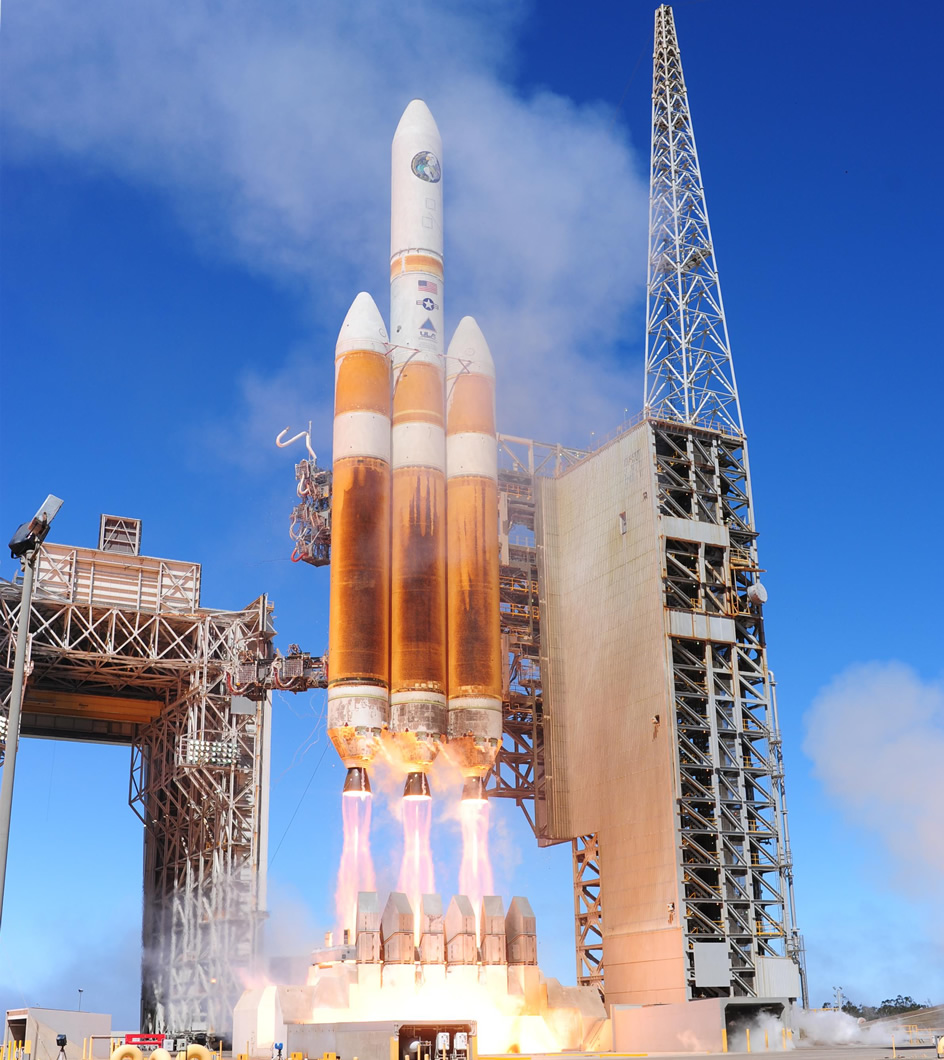 A United Launch Alliance Delta IV-Heavy rocket carrying a National Reconnaissance Office payload launches Aug. 28, 2013, from Space Launch Complex-6 at Vandenberg Air Force Base, Calif. This was the second Delta IV-Heavy launch for Vandenberg AFB, with the first occurring Jan. 20, 2011. The rocket is the largest to ever launch from the West Coast of the United States. (U.S. Air Force photo/Joe Davila)