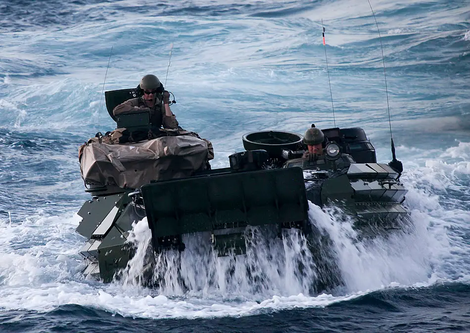 ATLANTIC OCEAN (June 21, 2015) Marines assigned to Amphibious Assault Platoon, Company E, Battalion Landing Team 2/6, conduct splash and recovery operations during a certification exercise. The 26th Marine Expeditionary Unit (26th MEU) and the Kearsarge Amphibious Readiness Group are being certified by evaluators with the Expeditionary Operations Training Group in preparation for a deployment later this fall. (U.S. Marine Corps photo by Staff Sgt. Bobby J. Yarbrough)