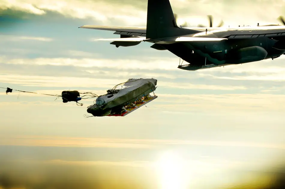 An MC-130J Commando II from the 9th Special Operations Squadron airdrops a Maritime Craft Aerial Delivery System over the Gulf of Mexico during a training exercise Nov. 12, 2015. This was the first time aircrews from the 9th SOS successfully completed an MCADS airdrop. (U.S. Air Force photo/Staff Sgt. Matthew Plew)